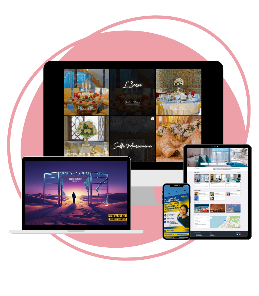 We create websites, stores, and digital content that help Moroccan businesses grow online. From design to marketing, we cover everything you need to get clients and sales.
